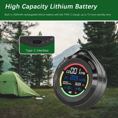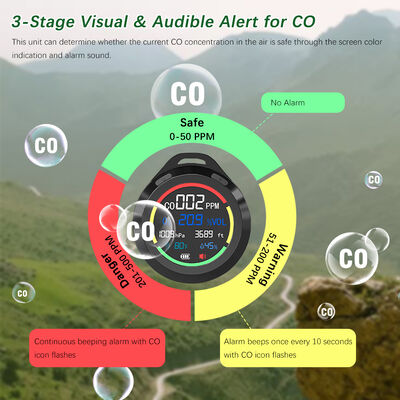[6-in-1とポータブルデザイン]RVの炭素一酸化物検出器は,CO,O2,大気圧,高度,温度,湿度をリアルタイムで検出します. 2.8 * 1.3インチミニサイズで,簡単にポケットに入れます7.8インチのローナードで 吊り上げられ 立っていられる