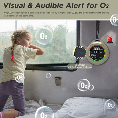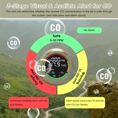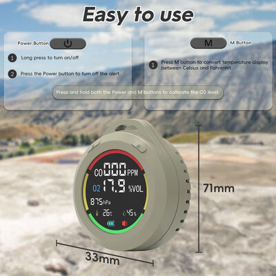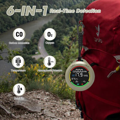 [6-in-1とポータブルデザイン]RVの炭素一酸化物検出器は,CO,O2,大気圧,高度,温度,湿度をリアルタイムで検出します. それは2.8 * 1.3インチミニサイズで,簡単にポケットに入れます7.8インチのローナードで 吊り上げられ 立っていられる