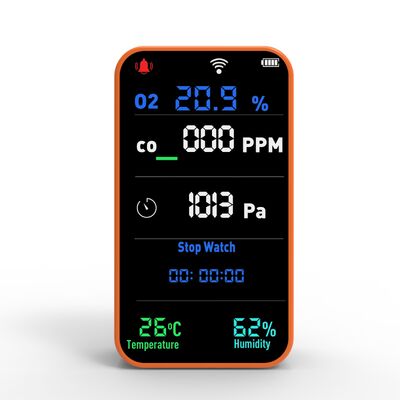 * 7-in-1多機能モニタリング:O2、CO、気圧、温度、湿度、ストップウォッチ、懐中電灯を包括的に検出。