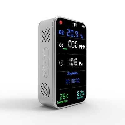 * 7-in-1多機能モニタリング:O2、CO、気圧、温度、湿度、ストップウォッチ、懐中電灯の包括的な検出。
