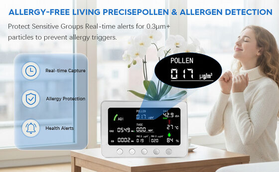 | Pollen Measuring Range, Accuracy | 0~500μg/m3, 0~100μg/m3 , ±10μg/m3 ; 101~500μg/m3 , ±10% |